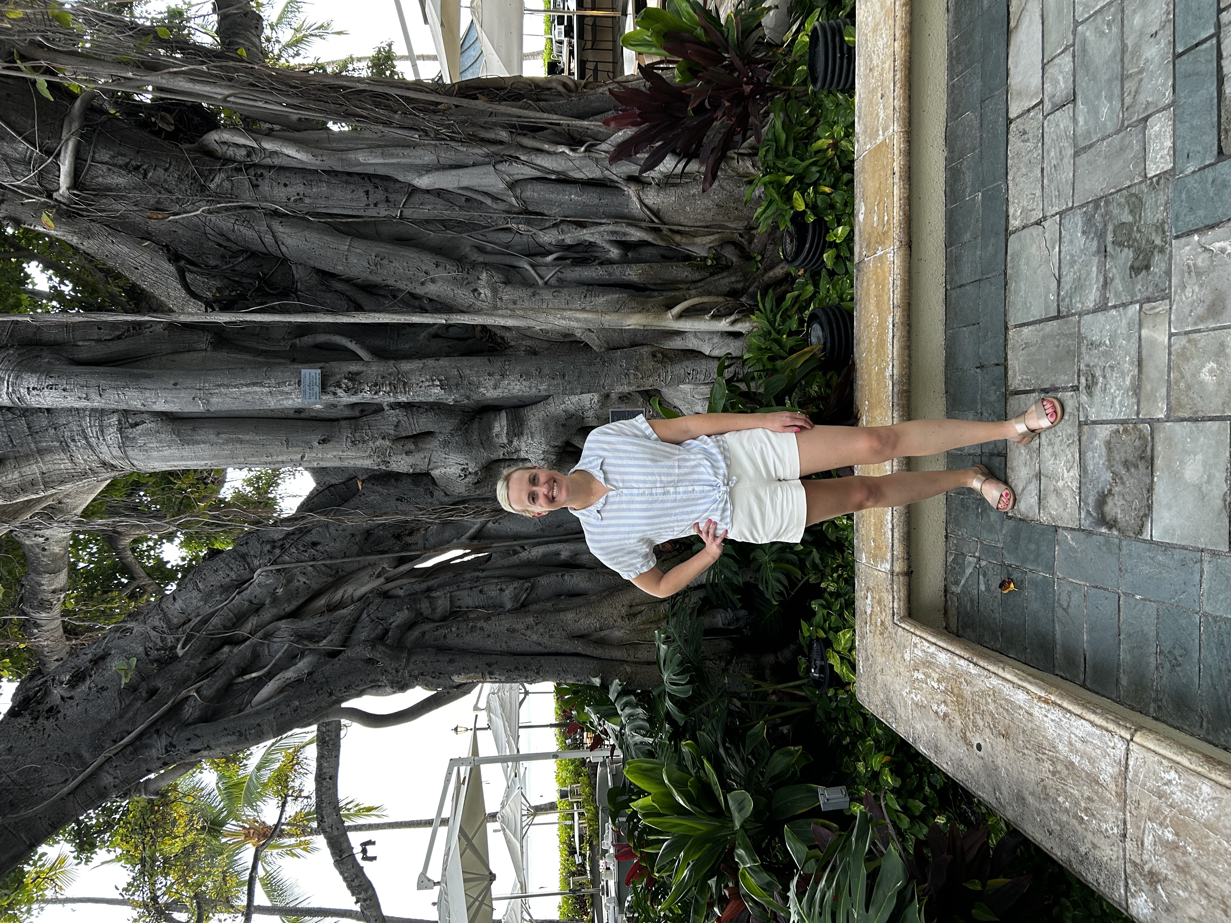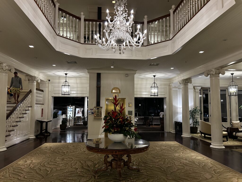 To start off on our adventure, we flew into Honolulu one day before our cruise. Our overnight stay was at the historic Moana Surfrider, a Westin Resort. This is actually one of the highlights of our trip! I thoroughly enjoyed this resort, even though we were only there for an evening and morning. We arrived just in time to see the sunset and to catch dinner at the Beach Bar underneath the gorgeous banyan tree they have in the courtyard. There were musicians playing music, and it was such a beautiful and relaxing setting!