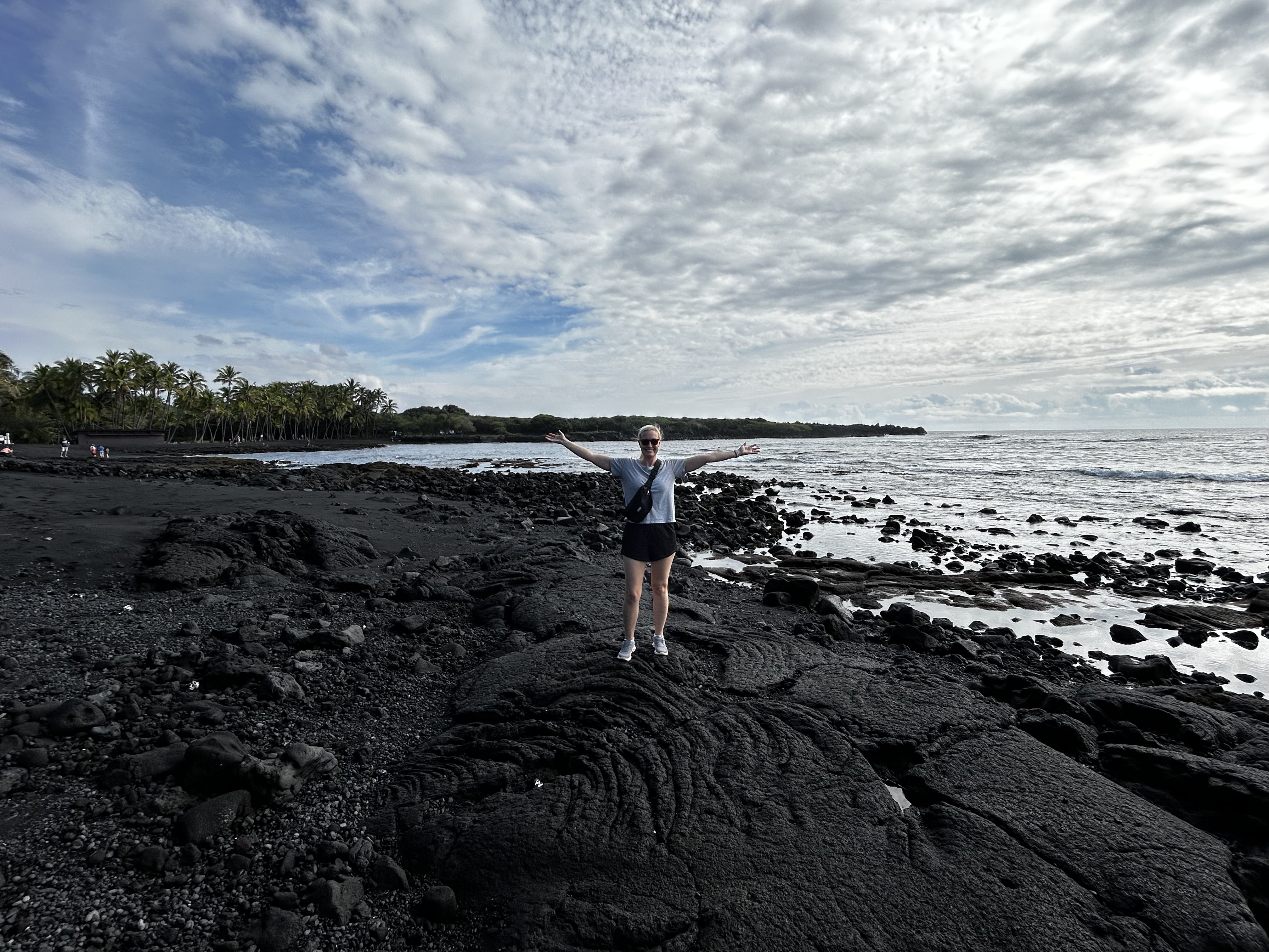 Our tour scheduled on this day was to the Hawai’i Volcanoes National Park and the Punalu?u Beach. Our favorite excursion! Along the way, we stopped at the Paradise Bakery, where we purchased malasadas (Portuguese donuts) – so good! The tour guide was fabulous and was also very attentive to our group’s questions, etc. She drove us to see the K?lauea volcano, which